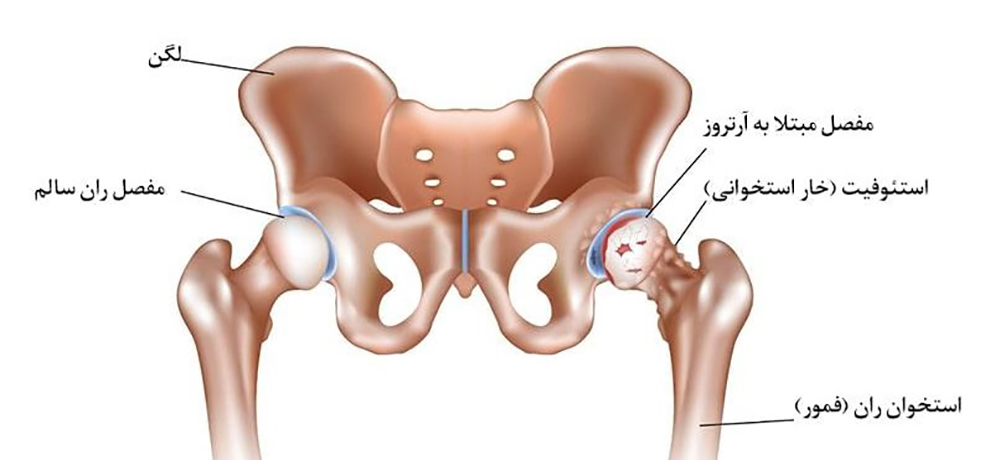 - درمان: از دارودرمانی و فیزیوترای تا تزریق و نهایتاً آرتروپلاستی کامل مفصل ران.